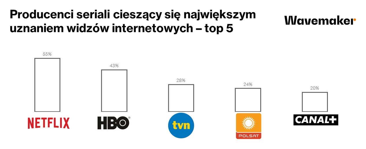 Seriale i filmy utrzymują się na ścisłym prowadzeniu w czołówce dłuższych form wideo najczęściej oglądanych w sieci, pokazuje VideoTrack 5, cykliczne badanie Wavemaker. 16 mln widzów internetowych sięga po polskie i / lub zagraniczne produkcje serialowe. Te ostatnie są także kołem zamachowym płatnych platform wideo (jak Netflix czy HBO Go), z blisko 40% polskich widzów internetowych twierdzących, że zagraniczne seriale to kategoria, za którą warto płacić w internecie.