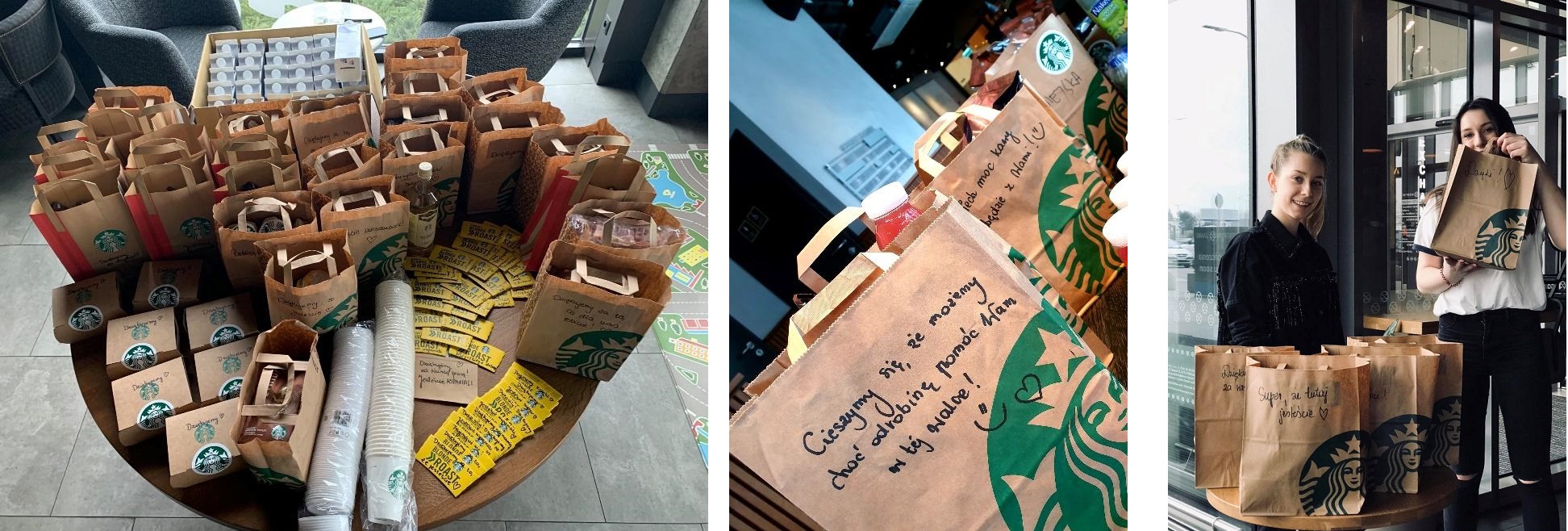 W 2020 roku zrealizowaliśmy kilka kluczowych projektów, ale też inicjatyw, które zrodziły się pod wpływem chwili. Przyłączyliśmy się m.in. do komunikowania akcji #Zostańwdomu i wraz z innymi markami AmRest, przekazywaliśmy posiłki i napoje do personelu medycznego (we własnym zakresie oraz w ramach ogólnopolskiej inicjatywy #Wzywamyposiłki). Nasi bariści zdołali dostarczyć w ten sposób kawę oraz przekąski wraz z życzeniami i słowami otuchy do szpitali w całej Polsce – łącznie prawie tysiąc paczek kawy dających aż 24 tys. filiżanek napoju. Zaangażowaliśmy się też w pomoc dla biznesu gastronomicznego, zachęcając na naszych kanałach społecznościowych do udziału w akcji #Środynazamówienie i wspierania ulubionych restauracji. W okresie zamknięcia kawiarni w wybranych lokalizacjach uruchomiliśmy również specjalne okienka na wynos, w których – jako niewielki gest wdzięczności – na darmową kawę mogli liczyć pracownicy medyczni, policjanci, straż miejska, pożarna, graniczna oraz wojsko.