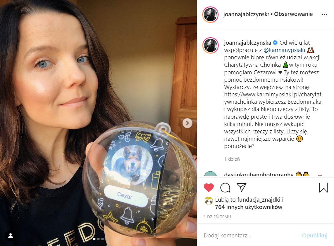 Podczas akcji #CharytatywnaChoinka każdy z nas może wysłać prezent bezdomnym zwierzakom na Święta. Wszystko odbywa się online na stronie internetowej karmimypsiaki.pl/charytatywnachoinka. Akcja wystartowała 1 grudnia i trwa do 27 grudnia. Do tej pory internauci wysłali 2739 paczek do schronisk. Łączna wartość opłaconych prezentów oraz darowizn wynosi w tym momencie 155674.