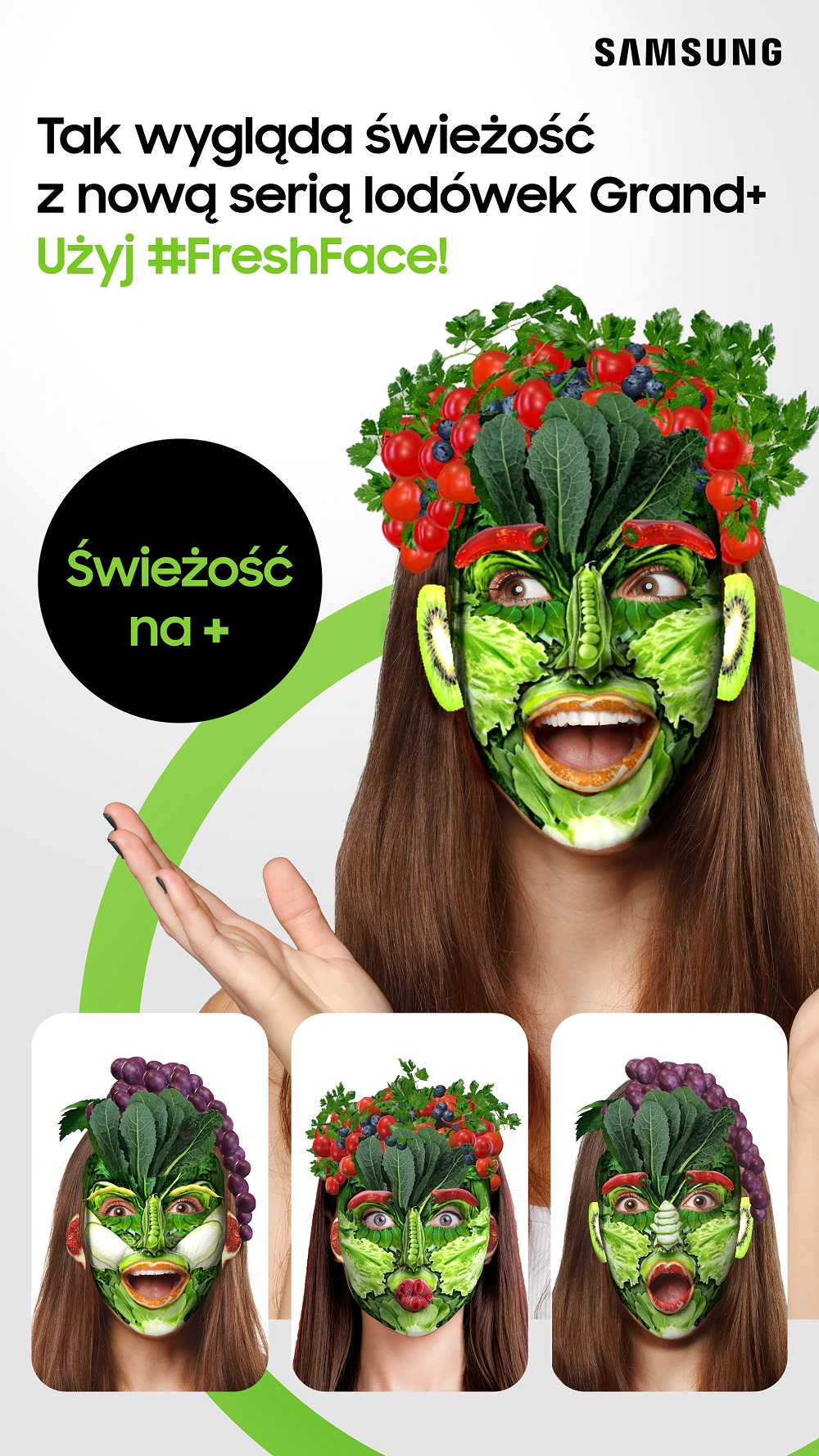 Chcesz nadać świeżość swoim zdjęciom na Instagramie i Facebooku? Szukasz czegoś oryginalnego w morzu podobnych do siebie filtrów? Wypróbuj #FreshFace od Samsung i zaskocz znajomych. Nowy filtr to oryginalne połączenie inspiracji obrazami Giuseppe Arcimboldo, przedstawiającymi ludzkie twarze skomponowane z warzyw i owoców i tego co najlepsze w nowej linii lodówek Samsung Grand+. Brzmi intrygująco? Włącz się do zabawy i odśwież swoje selfie.