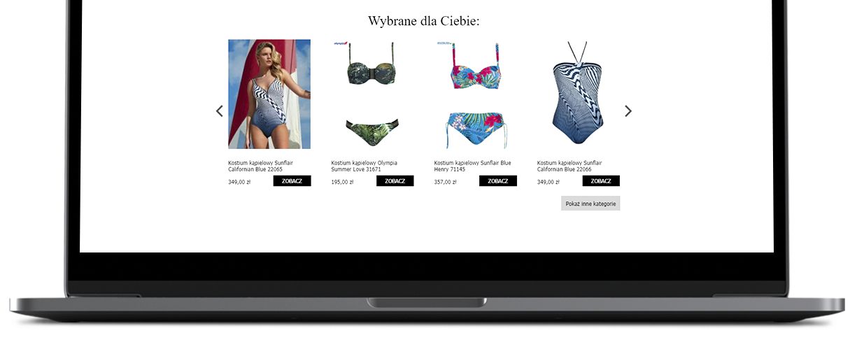 Jest to rekomendacja oparta na aktywności klienta w Twoim sklepie i prezentuje miks produktów, którymi zainteresowanie okazali klienci o podobnym modelu behawioralnym. Pod uwagę brane są ostatnio przeglądane produkty, produkty dodane przez klientów do koszyka, a także te, które ostatecznie zostały zakupione.