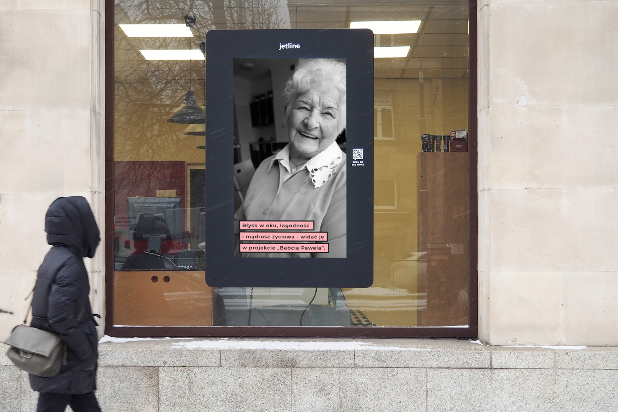 – Starość to rzadka jakość w świecie reklamy. W dodatku prawdziwa starość, nie przebrana, nie ucharakteryzowana, ale realna, zwyczajna. Te zdjęcia nas poruszyły. Pomyśleliśmy, że taka starość to przywilej, i że chcielibyśmy pokazać fotografie Babć, Kobiet. Zdjęcia z cyklu „Babcia Pawela” miały zostać wyemitowane 21 stycznia, z okazji Dnia Babci, ale zbieg okoliczności sprawił, że pokazujemy je teraz i uważam, że 8 marca data o wiele lepsza – mówi Agnieszka Maszewska z Jet Line.