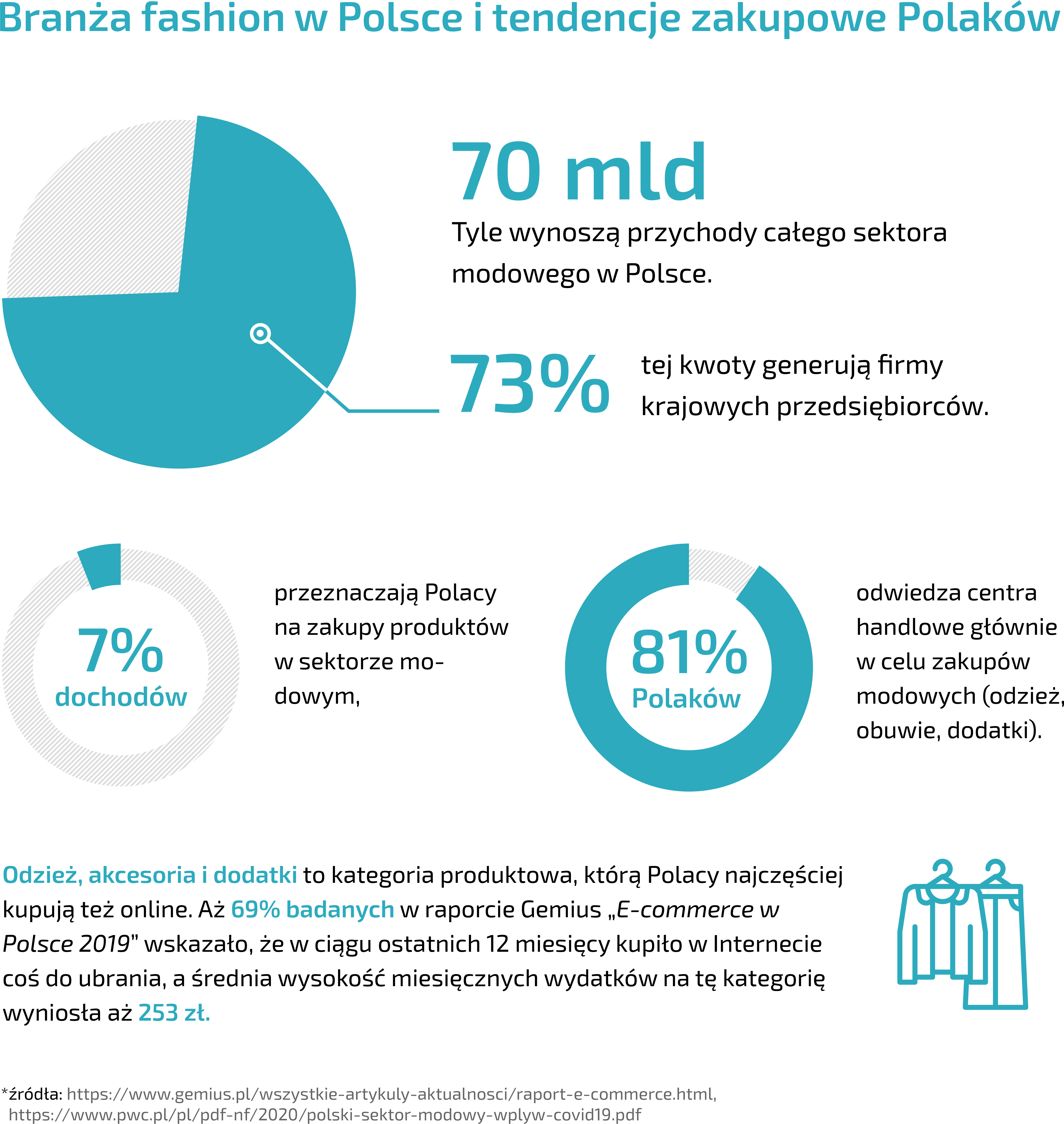 Odzież, akcesoria i dodatki to kategoria produktowa, którą Polacy najczęściej kupują też online. Aż 69% badanych w raporcie Gemius „E-commerce w Polsce 2019” wskazało, że w ciągu ostatnich 12 miesięcy kupiło w Internecie coś do ubrania, a średnia wysokość miesięcznych wydatków na tę kategorię wyniosła aż 253 zł*.