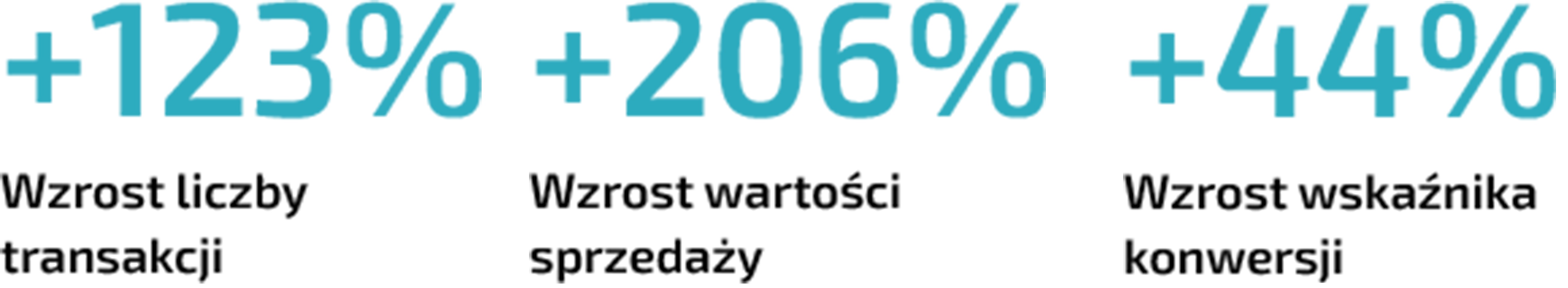 Wzrost wskaźnika konwersji (CR) +44% rok do roku (2020 vs 2019). Konwersja rozumiana jest tu jako procent sesji na stronie zakończonych sprzedażą.