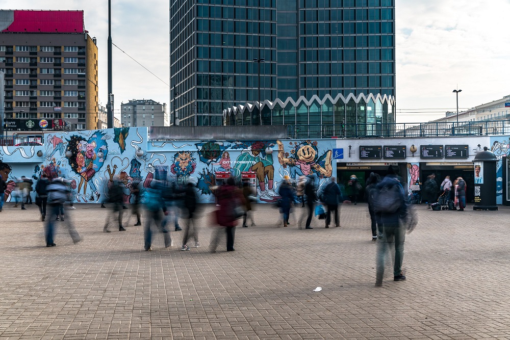 Kolejny projekt stworzony przez All Stars Ewę Mos (@ewamos) i Alka Morawskiego (@liskula) właśnie powstał przy warszawskiej Patelni w okolicach stacji metra Centrum. Dwójka artystów połączyła siły w celu pokazania tego, że różnice pomiędzy płciami nie są ważne, wszyscy jesteśmy równi i powinniśmy dążyć do tego, aby akceptować innych bez względu na kolor skóry, płeć czy inne różnice pomiędzy ludźmi. Postacie z muralu wędrują pomiędzy światami, a każdy bohater reprezentuje odważnych ludzi, którzy nie boją się zmian an i zmieniają przestzreń wokół siebie. Mural na patelni dodatkowo posiada rozszerzoną rzeczywistość – po zeskanowaniu elementów ściany, praca Ewy i Alka ożywa, dzięki czemu możemy poznać inspirujące historie społeczności All Stars i dowiedzieć się w jaki sposób przełamują bariery i walczą z dyskryminacją.
