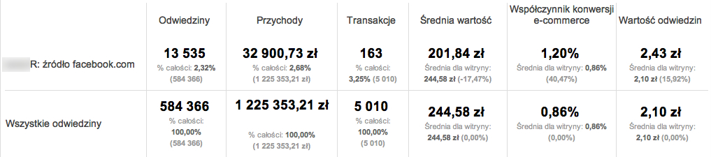 ale również współczynnika konwersji czy średniej wartości odwiedzin: