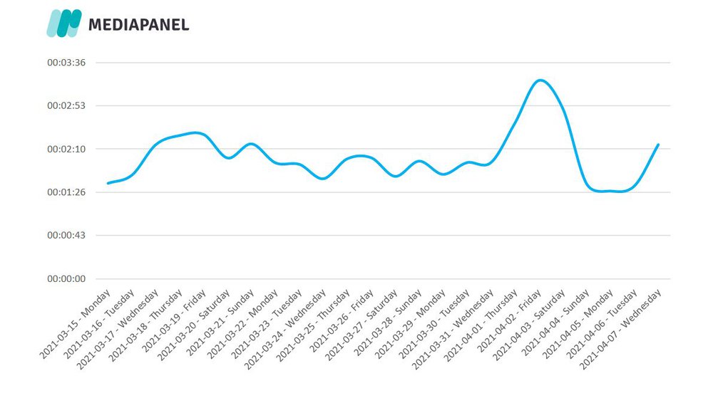 Wielki Piątek i Sobota były również dniami, gdy internauci spędzali na witrynach poświęconych kulinariom najwięcej czasu. 2 kwietnia średni czas na użytkownika wyniósł ponad 3 minuty, natomiast 3 kwietnia nieznacznie mniej: 2 minuty i 51 sekund. Średnia dzienna dla marca w przypadku wskaźnika ATS wynosiła 1 minutę i 56 sekund.