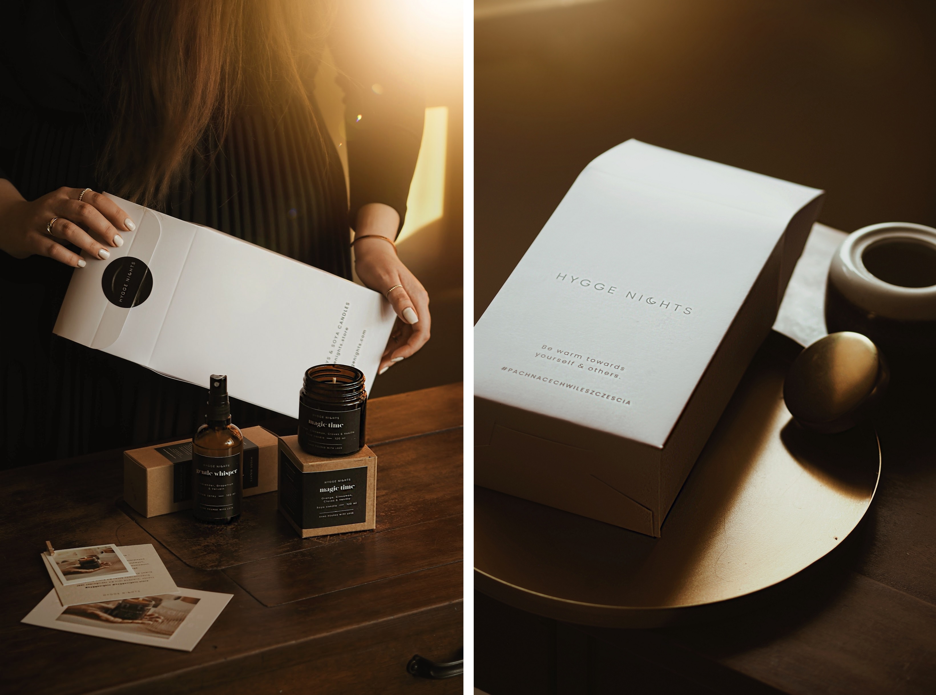 Wróćmy jednak do clou tego artykułu. Dotyk to słowo klucz, bez którego ta historia nie miałaby szczęśliwego zakończenia – doskonale współgra z filozofią Hygge Nights oraz finezją, jaką ma w sobie komunikat, przelany na szlachetny papier. Dotyk pojawia się już na etapie powstawania produktów, wytwarzanych ręcznie w domowej manufakturze, a następnie wędruje dalej, tam gdzie, mieszają się substancje oraz powstają nowe kompozycje zapachowe, aż do etapu pakowania. To długa ścieżka, ale warta uwagi, ponieważ efektem końcowym ma być zamówienie „dopieszczone” w każdym detalu. I aby tak się stało, w tym momencie musi wejść właśnie papier – niekoniecznie cały na biało.