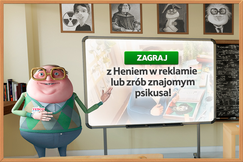 Henio, przykładny mąż Krysi, był już m.in. raperem (www.heniospiewa.pl) i piłkarzem (youtu.be/YjWJoQFxLMY), a teraz wciela się w rolę pilnego ucznia. „Powrót do szkoły” to aplikacja, która sprawia nie lada frajdę jej odbiorcom! Po wejściu na stronę powrotdoszkoly.pl przenosimy się do klasy wypełnionej rozmaitymi pomocami naukowymi. Możemy obejrzeć reklamę Tesco lub sami w niej zagrać, ramię w ramię z Heniem. Wystarczy wybrać odpowiednie zdjęcie, które można dodatkowo wzbogacić o szablon postaci. W kolekcji znajdują się m. in. Maria Słodziak Curie, Kopiernik, Koleżko Mieszko i wiele innych. Następnie można obejrzeć reklamę z własnym udziałem. Ponadto, aplikacja umożliwia zrobienie psikusa swoim znajomym i wysłanie im linka z odpowiednio przygotowanym filmem.
