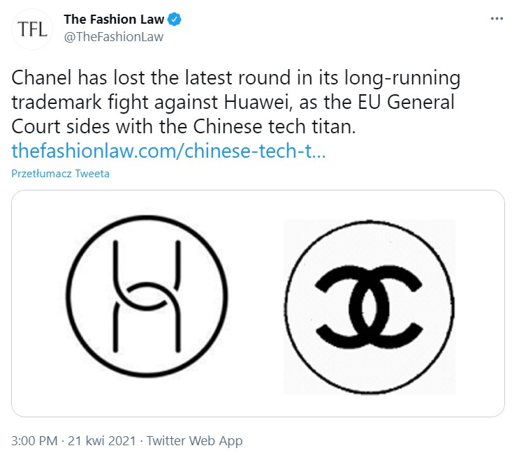 Z tym jednak nie zgodził się luksemburski sąd UE, który orzekł, że mimo iż oba logotypy faktycznie są do siebie podobne, to nie ma ryzyka, by ktokolwiek je ze sobą pomylił. Przede wszystkim z uwagi na to, że znak towarowy Chanel ma orientację poziomą, zaś logo Huawei – pionową. Różnice zauważalne są także w grubości przeplatających się półpierścieni.