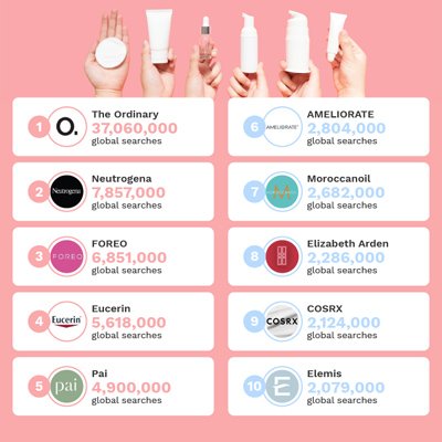 Zaszczytne 3. miejsce w kategorii „Most Popular Skincare Brands” („Najpopularniejsze marki pielęgnacyjne”) marce udało się zająć dzięki oszałamiającej ilości wyszukiwań w Google – aż 6,851,000 zostawiając inne znane marki kosmetyczne daleko w tyle.