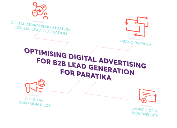 Projekt rozpoczął się od kompleksowego audytu pod względem digital marketingu firmy Paratika i jej konkurencji, tak aby zidentyfikować słabe strony firmy i możliwości jej rozwoju. Te informacje pomogły w stworzeniu nowej strategii budowania bazy digital marketingowej dla działań generujących leady B2B.