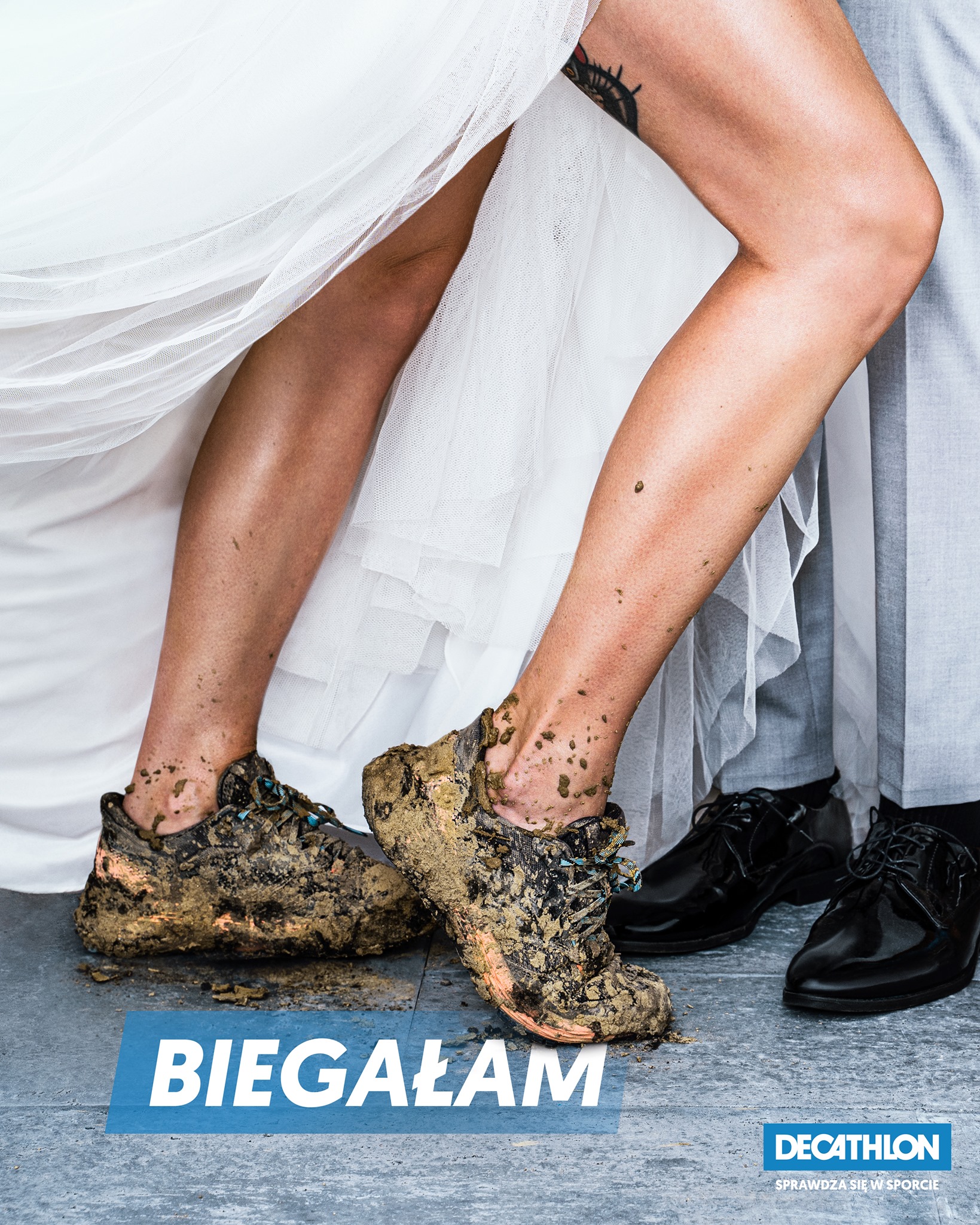 Właśnie ten dysonans postanowiła wykorzystać w swojej kampanii marka Decathlon, która zachęca do zapoznania się z ofertą sprzętu trailowego i do dzielenia się swoimi przeżyciami związanymi z bieganiem. Zdjęciom towarzyszą hasła „Brudna podeszwa, czysta głowa”, „Błoto to mój medal” oraz „Nie biegaj, bo się ubrudzisz”.