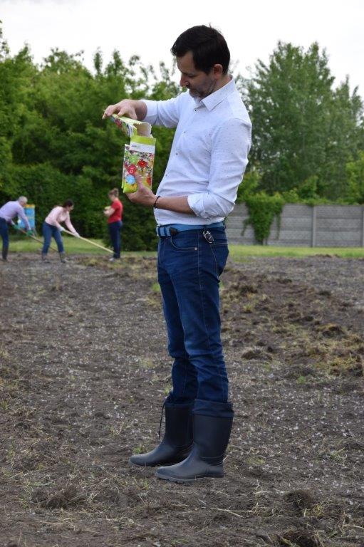 – W zeszłym roku przy naszej siedzibie ustawiliśmy ule, w których zamieszkały trzy pszczele rodziny, a którymi opiekuje się nasz pracownik – doświadczony pszczelarz. Już wtedy założyliśmy, że wysiejemy dla naszych pszczół łąkę. Udało nam się pozyskać wewnętrzny grant w ramach programu wolontariackiego i dodatkowo wsparcie zewnętrznego partnera, firmy Bayer. Przedstawiciele firmy podzielili się z nami doświadczeniami i radami, jak przygotować grunt pod zasiew, jak go wykonać, a także ufundowali nasiona – dodaje Cezary Mychlewicz.