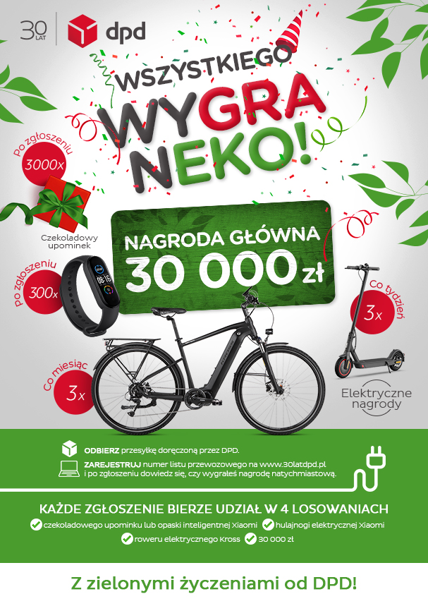 Z okazji okrągłego jubileuszu – 30 lat obecności na polskim rynku – firma kurierska DPD postanowiła zorganizować loterię dla swoich Klientów.