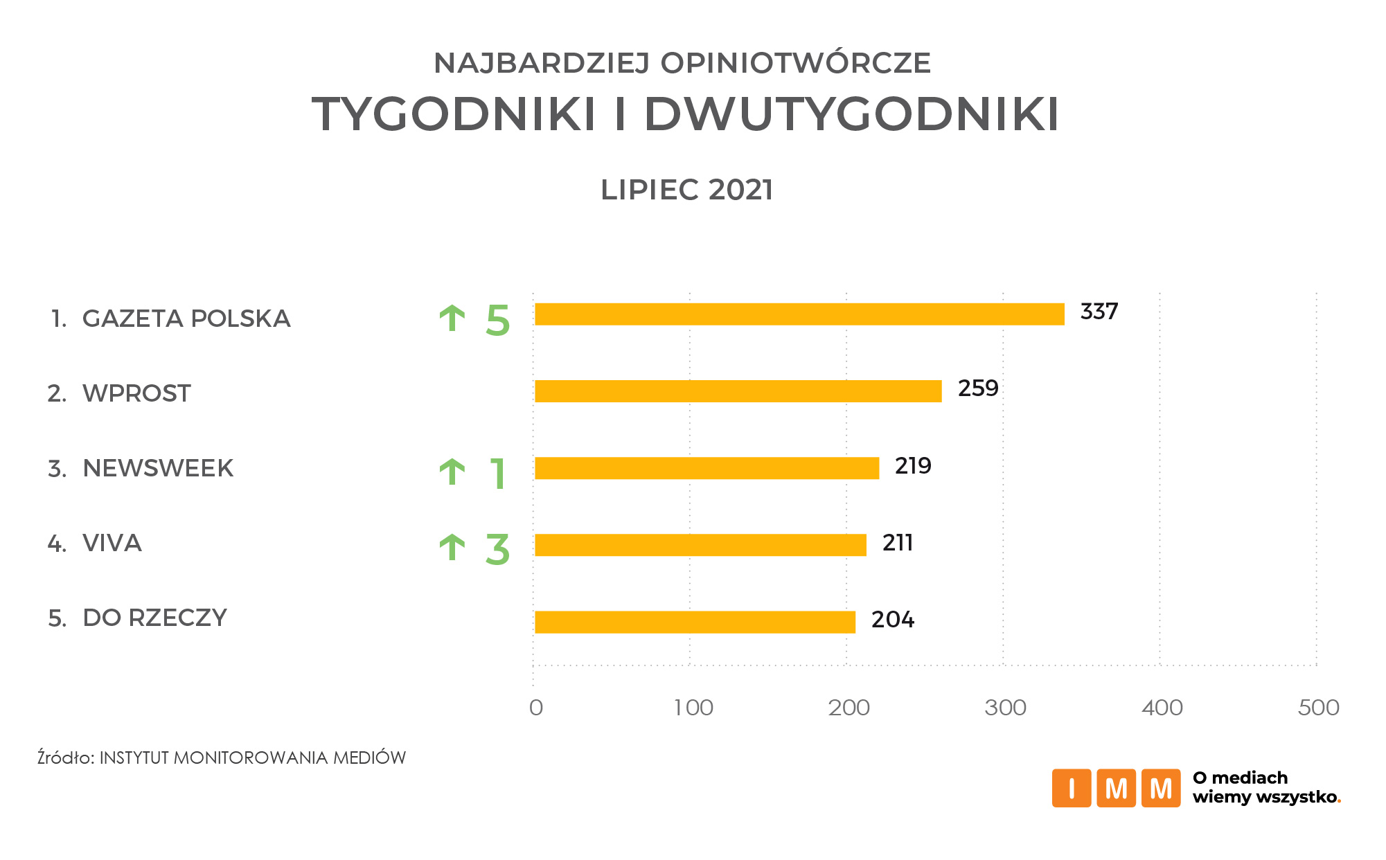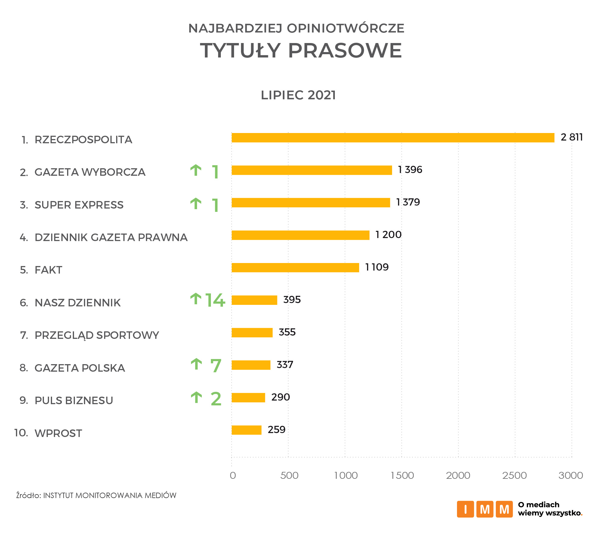 Raport „Najbardziej opiniotwórcze media w Polsce” za lipiec 2021 został przygotowany przez Instytut Monitorowania Mediów (IMM).
