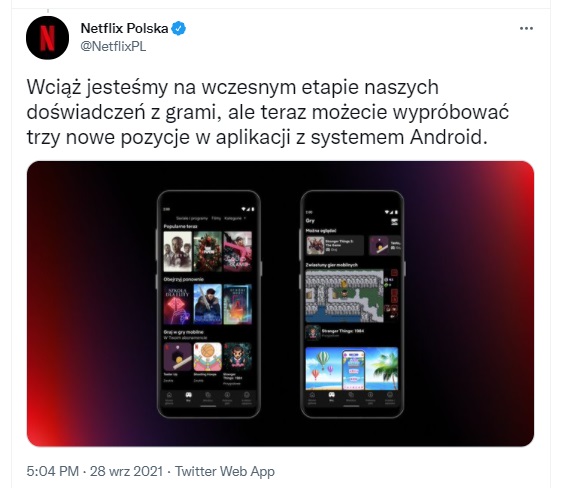 W sierpniu Netflix zadebiutował swoimi grami mobilnymi – w pierwszej kolejności użytkownicy z Polski mogli skorzystać z testowej oferty gier w ramach subskrypcji pakietu Netflix. Niedawno do gier „Stranger Things 3” oraz „Stranger Things: 1984” dołączyły także trzy nowe pozycje. Gigant streamingowy udostępnił gry „Teeter Up”, „Shooting Hoops” i „Card Blast”, w które mogą zagrać już nie tylko polscy subskrybenci, ale także użytkownicy z Włoch i Hiszpanii.