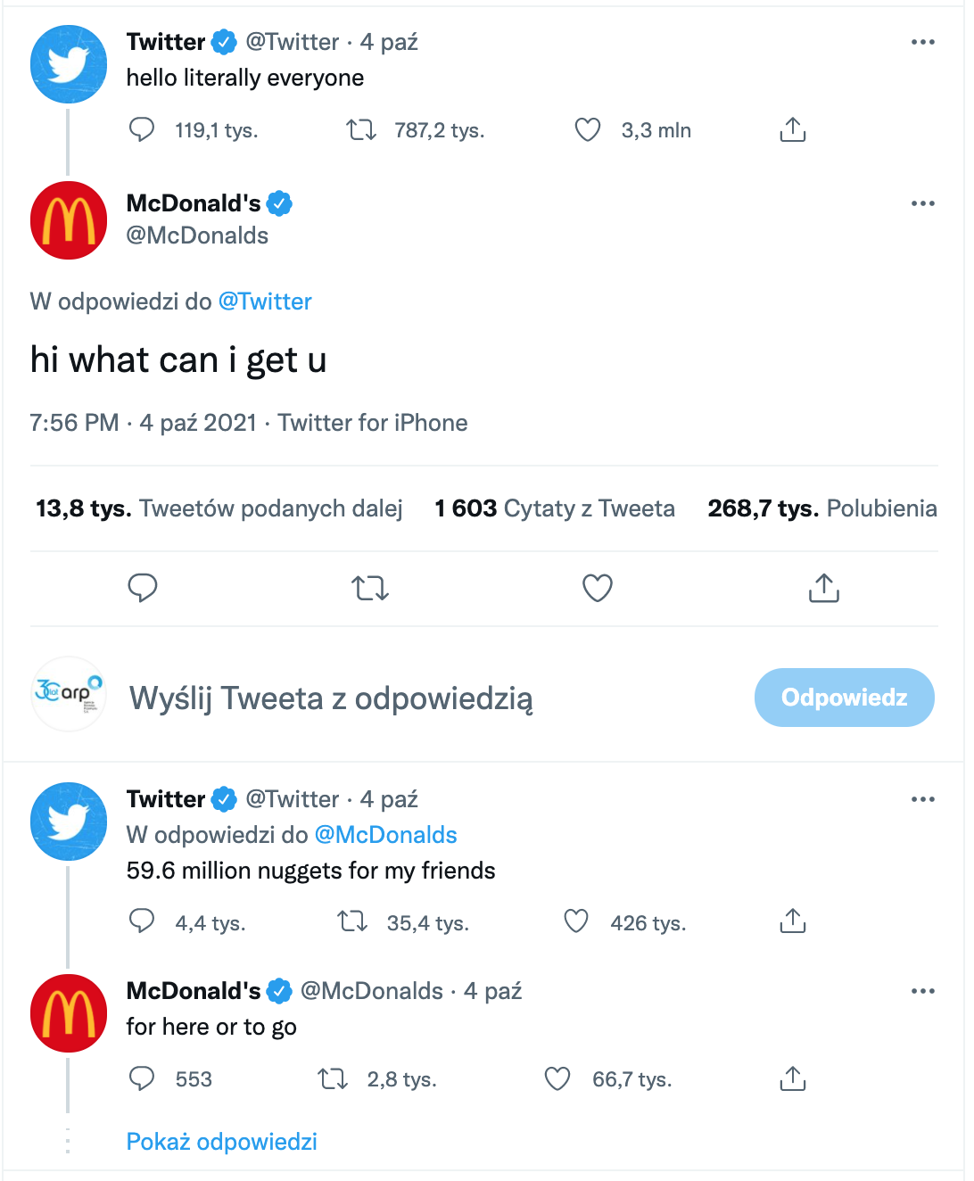 Myślę, że wartościową umiejętnością w komunikacji marek jest wykorzystywanie takich sytuacji i real-time marketing robiony ze smakiem i humorem. Świetnie komunikował się sam Twitter na swojej platformie: