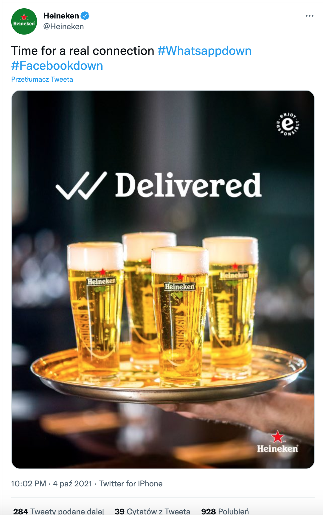 Ciekawie sprawę wykorzystał też Heineken zachęcając do spotkań „w realu” przy piwie w obliczu zaistniałej sytuacji: