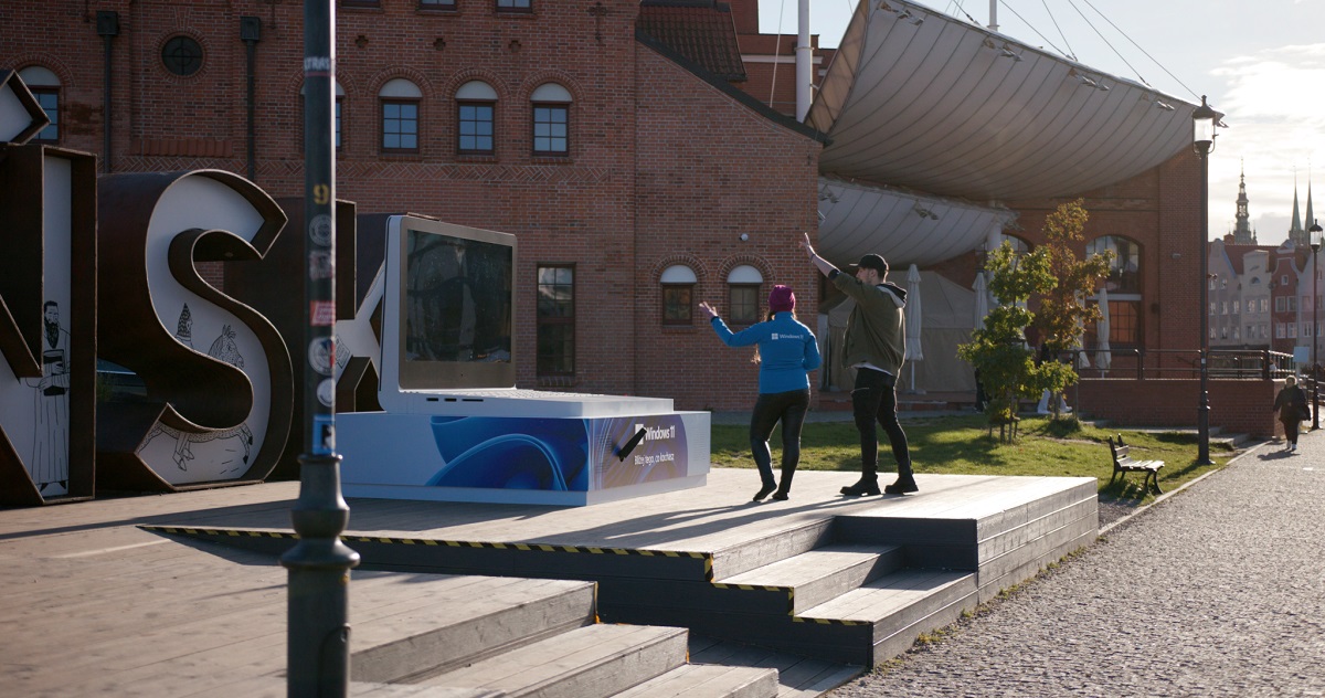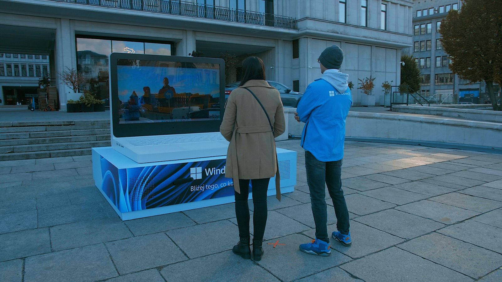 Dwa ogromne laptopy rozstawione w obu lokalizacjach zachęcały do zatrzymania się na chwilę i porozmawiania z osobą po drugiej stronie ekranu za pośrednictwem Microsoft Teams. Uczestnicy wydarzenia mogli dowiedzieć się czegoś o swoim nowopoznanym rozmówcy lub życzyć mu dobrego dnia. Eksperyment udowodnił, że dla Windows 11 odległość 350 km nie stanowi żadnej przeszkody w łączeniu nieznanych sobie osób.