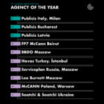 Tytuł Agencji Roku, po raz drugi raz z rzędu trafił w ręce Publicis Italy z Mediolanu, tym samym przyczyniając się do ogólnego sukcesu spółki Publicis, która zebrała najwięcej punktów i została uhonorowana tytułem Sieci Roku.