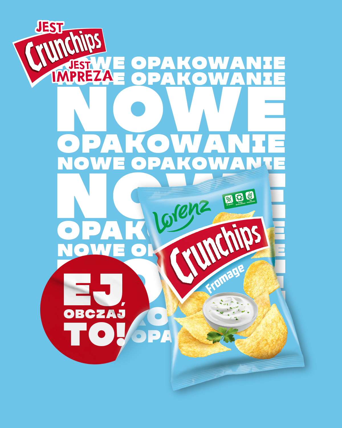 Nowa kampania wizerunkowa marki Crunchips to kolejny przykład realizacji projektu w duchu Power Of One przez agencje z Grupy Publicis. Komunikacja w mediach społecznościowych oparta jest na haśle „Ej, obczaj to” i nawiązuje do nowej odsłony opakowań Crunchips, na których, oprócz nowego logo, znajduje się również informacja o tym, że chipsy produkowane są na oleju słonecznikowym i nie zawierają glutenu. Kampania będzie wspierana również działaniami z influencerami.