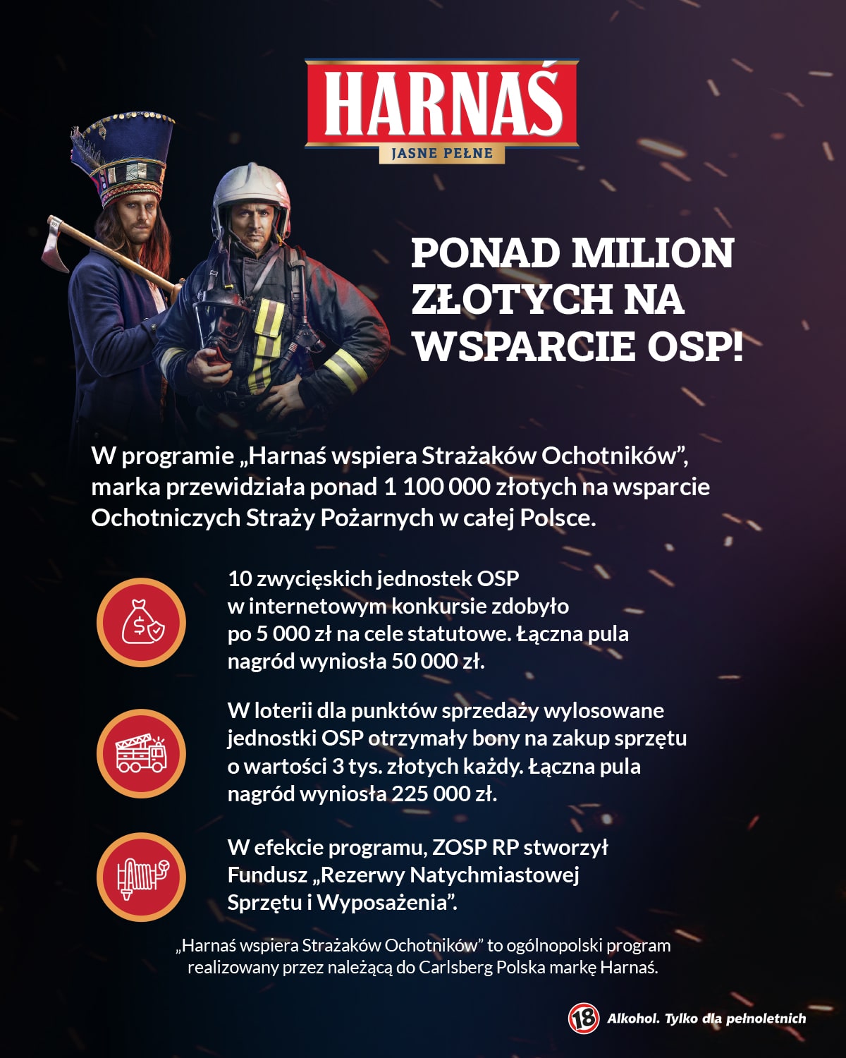 Strażacy Ochotnicy każdego dnia poświęcają swój czas, nierzadko ryzykując zdrowie i życie, aby nieść pomoc tam gdzie jest ona najbardziej potrzebna. To cisi bohaterowie o wielkim sercu. W wypełnianiu ich misji istotnym wsparciem jest specjalistyczny sprzęt, którego nigdy nie jest za wiele. W odpowiedzi na potrzeby Ochotniczych Straży Pożarnych zaproponowaliśmy program, który stworzył szansę na doposażenie strażaków ochotników. Jest on jednocześnie wyrazem wdzięczności za ogromne zaangażowanie i poświęcenie – mówi Barbara Rozbicka-Śledź, junior brand manager marki Harnaś.