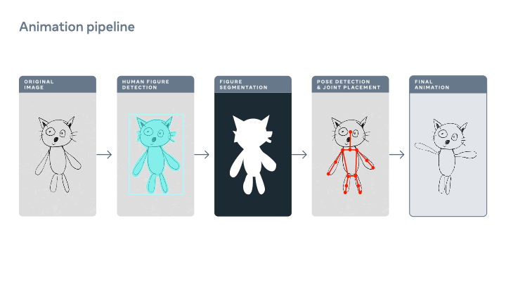 Badacze Meta opracowali pierwszą tego typu metodę wykorzystania AI do automatycznego animowania ręcznie rysowanych postaci przypominających ludzi (tj. posiadających dwie ręce, dwie nogi, głowę, itp.). Po przesłaniu rysunków do prototypowego systemu, rodzice i dzieci mogą obserwować, jak ich dzieła stają się ruchomymi postaciami, które podrygują, tańczą i podskakują. Filmiki przedstawiające animowane rysunki można pobrać, aby podzielić się nimi z przyjaciółmi i rodziną. Rodzice mogą również przyczynić się do dalszego rozwoju technologii, wyrażając zgodę, aby rysunek ich dziecka był wykorzystywany do dalszego uczenia systemu sztucznej inteligencji.