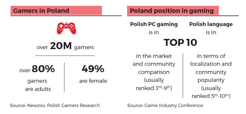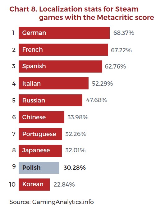 Polacy są w zasadzie jedną z największych grup graczy na całym świecie. Pokazują to też wyniki platformy Steam. Język polski jest tam bowiem 9. co do wielkości, jeśli chodzi o lokalizację. Tj. spora część tytułów jest tłumaczona czy wydawana w języku polskim (30,28%). W zasadzie ustępuje on jedynie niemieckiemu, francuskiemu, hiszpańskiemu, włoskiemu, rosyjskiemu, chińskiemu, portugalskiemu i japońskiemu.