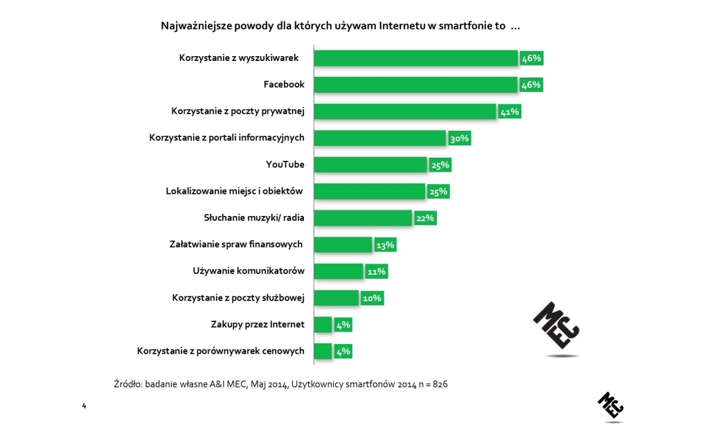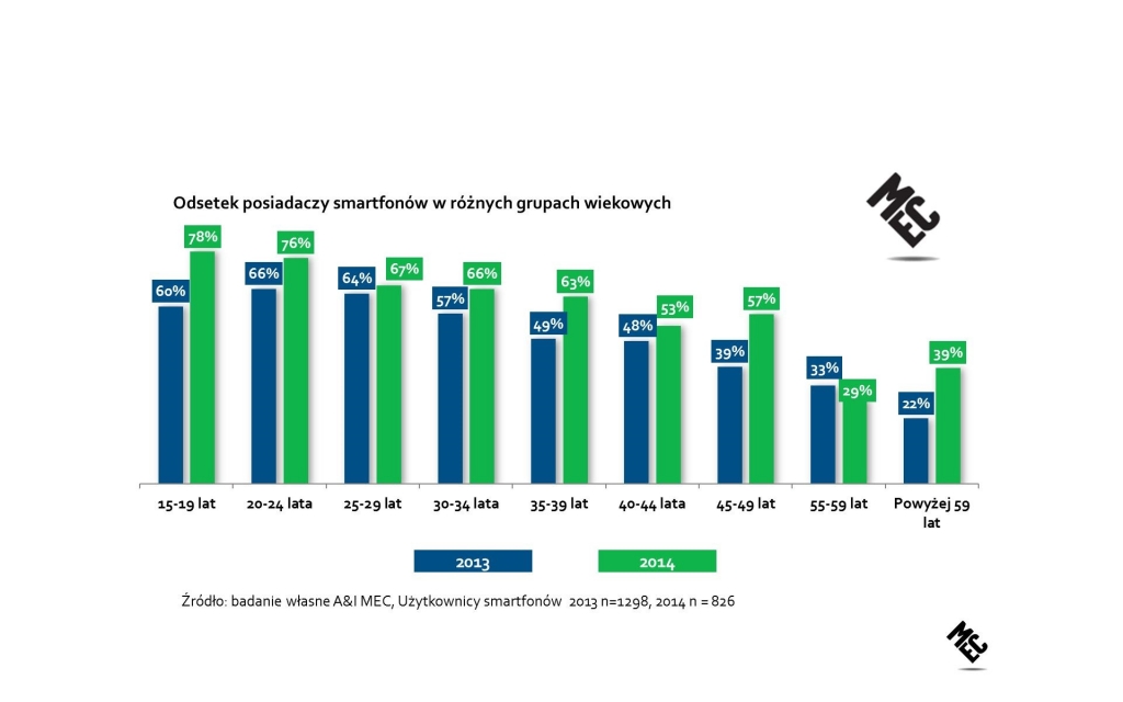 O 17 proc. wzrósł w 2014 r. odsetek posiadaczy smartfonów wśród polskich internautów – wynika z czwartej, najnowszej edycji badania „MEC Mobile Report” zrealizowanego przez dom mediowy MEC.