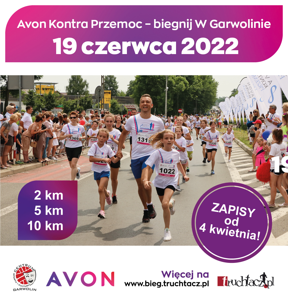 Bieg „Avon Kontra Przemoc – biegnij w Garwolinie” organizowany jest od 2010 roku przez Centrum Sportu i Kultury w Garwolinie oraz Stowarzyszenie Truchtacz.pl. Głównym sponsorem jest fabryka kosmetyków Avon Operations Polska. Wydarzenie, które co roku przyciąga ok. tysiąca biegaczy, nie tylko z Polski, ale i całego świata, wpisało się już na stałe w kalendarz najważniejszych ogólnopolskich biegów oraz regionalnych imprez charytatywnych.