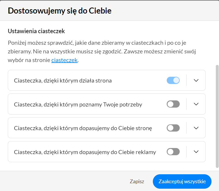Oprócz ogólnej zgody na śledzenie, mamy obowiązek pozwolić użytkownikowi zarządzać tym, jakie dane o nim będziemy wykorzystywać.