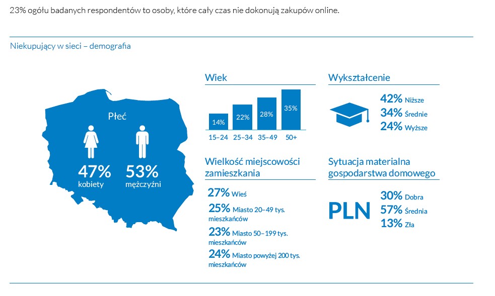 Przeglądając publikację Deloitte, możesz dowiedzieć się też jednej ważnej rzeczy – to nie zetki najbardziej pokochały e-commerce, a… millenialsi. Tekst jest jednak z 2019 r., a jak dobrze wiemy, po pandemii koronawirusa trochę się pozmieniało w aspekcie handlu internetowego. Informacjom opublikowanym przez Deloitte zaprzecza jednak raport Gemius Polska, pt. „E-commerce w Polsce 2021”. Według niego tylko 16% osób w wieku 15–24 nie kupuje przez internet. Tak samo postępuje 22% ludzi w przedziale od 25 do 34 lat.