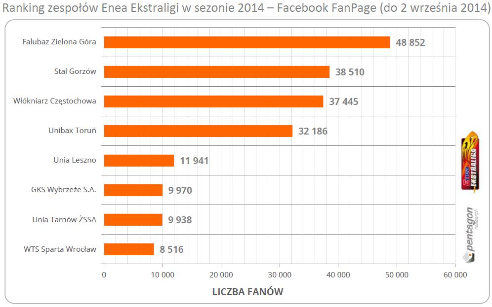 Popularny ZKŻ jest zdecydowanym liderem i wyprzedza drugą Stal Gorzów o ponad 10 tysięcy „Lubię to”. Gorzowianie z 38 510 fanami wskoczyli w tym roku na drugie miejsce zostając jednocześnie zespołem, który najbardziej powiększył grono fanów swojego profilu. Miejsce trzecie przypadło Włókniarzowi Częstochowa, który w porównaniu do poprzedniego rankingu spadł o jedną lokatę, mimo, że również znacząco zwiększył liczbę fanów.