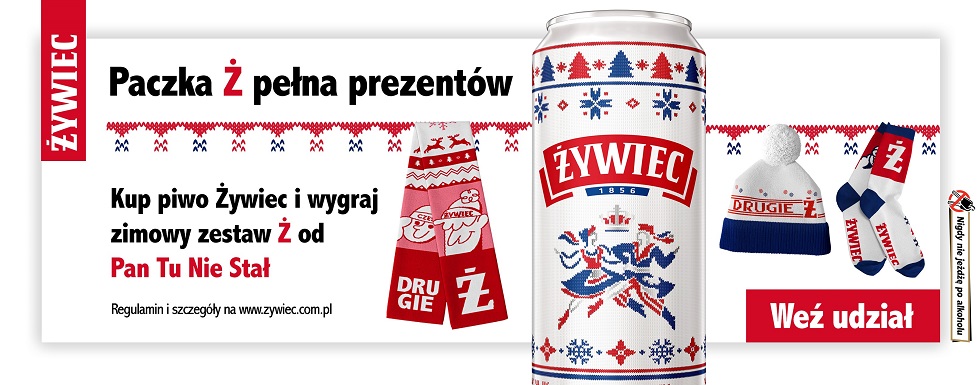 Żywiec wciąż zachęca, by doceniać to, co w życiu ważne i skupiać się na relacjach z bliskimi, zwłaszcza przed Świętami. Idei drugiego Ż nie mogłoby więc zabraknąć w zimowej komunikacji marki. Na półki trafiły już piwa Żywiec w opakowaniach nawiązujących do wzorów świątecznych swetrów. Akcji towarzyszy konkurs, w którym do wygrania są limitowane gadżety od Pan Tu Nie Stał. 23 listopada w telewizji pojawiła się również nowa, zimowa odsłona reklamy Żywca.