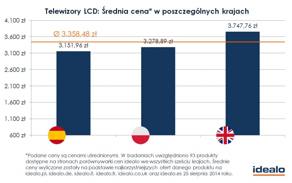 … Wielkiej Brytanii. Telewizory LCD w najwyższej cenie oferowane są na stronie idealo.co.uk. Spośród 93 zbadanych produktów aż 57 osiąga na brytyjskiej stronie idealo najwyższą cenę. Brytyjskie oferty są średnio o 435,87 zł, czyli o 13 proc. wyższe od europejskiej ceny średniej.