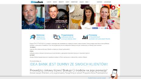 Mały mało może, ale w parze z dużym — może więcej. Dlatego duży bank — Idea Bank pomaga małym firmom — własnym klientom, wypromować ich działalność. „Zapraszając” przedsiębiorców do własnych reklam, jednocześnie pozycjonuje siebie jako bank, który „jest dumny ze swoich klientów”. Efekt: marketingowy featuring z korzyścią dla obu stron.