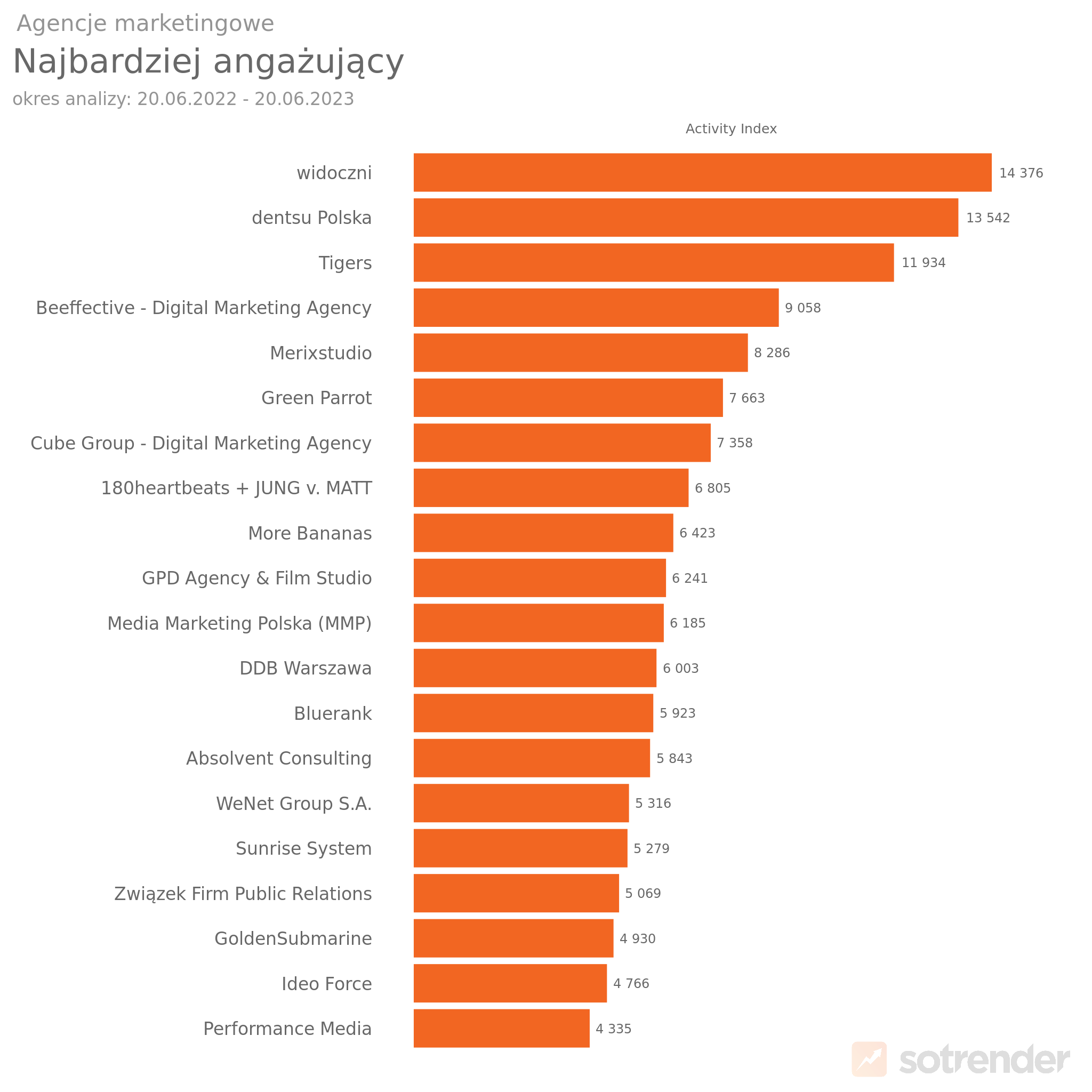 Przeanalizowanych zostało 290 profili agencji w okresie od 20.06.2022 – 20.06.2023. W analizie nie zostały uwzględnione agencje, które działają w skali globalnej, a ich profile prowadzone są wyłącznie w języku angielskim.