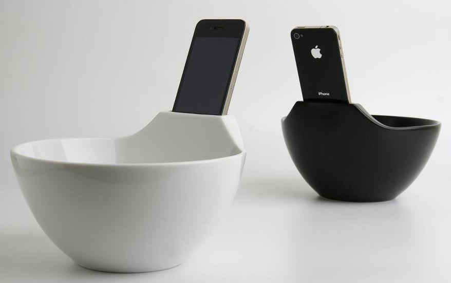 Akcesoria dedykowane iPhone’owi stanowią zdecydowanie najszerszą, a jednocześnie najbardziej naszpikowaną groteską grupę gadżetów. Wręcz perfekcyjnie wpisuje się w nią Anty-Samotnościowa Miska, umożliwiająca umieszczenie telefonu w specjalnie wyprofilowanym zagłębieniu, umiejscowionym na krawędzi naczynia i oglądanie przykładowo ulubionego serialu lub wiadomości w trakcie konsumpcji. Choć cena zwalczającej nostalgię miski nie została podana do publicznej wiadomości, wzbudziła ona duże zainteresowanie wszystkich odwiedzających facebookowy profil twórcy, tj. MisoSoupDesign. Trzymanie telefonu w dłoni lub na stole jest już po prostu niemodne!