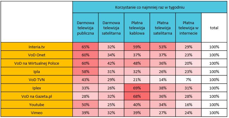 Tradycyjna telewizja i Vod to jeszcze komplementarne, a nie wykluczające się źródła contentu TV – korzystanie z klasycznego VoD nie wpływa i nie zastępuje oglądania tradycyjnej telewizji. Przykładowo – 65 proc. użytkowników VoD na Interii wciąż chętnie ogląda zwykłą telewizję, a z drugiej strony tylko 28 proc. odwiedzających Vod Gazety.pl korzysta z domowego telewizora (ci ostatni za to szczególnie chętnie korzystają z płatnej telewizji kablowej).