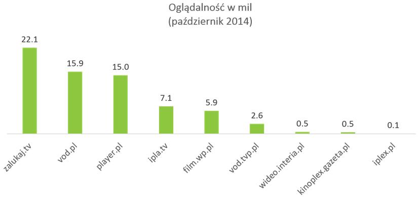 W Polsce zdecydowanie najpopularniejszym serwisem VoD jest zalukaj.tv, który udostępnia między innymi nielegalne tytuły (22 miliony użytkowników miesięcznie wg smilarweb.com). Trudno jest oszacować, czy popularność nielegalnych treści się zmieni, ale jak widać – wciąż mają się one bardzo dobrze. Na kolejnych miejscach są serwisy VoD Onetu (vod.pl) i TVN (player.pl), które są odwiedzane przez co najmniej 15 milionów użytkowników miesięcznie każdy. Ich popularność jest po prostu wspierana działalnością stojących za nimi grup medialnych.