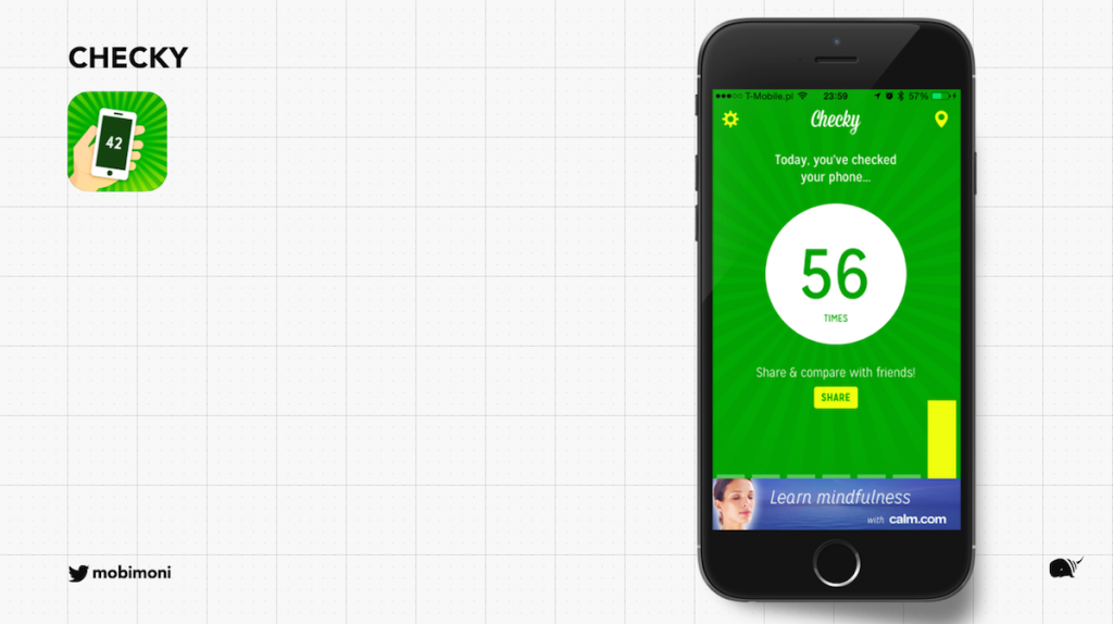 Badania mówią, że najbardziej aktywne osoby sięgają po telefon 120-150 razy dziennie. Jesteś ciekawy, ile razy sięgasz Ty? Ściągnij sobie aplikację Checky, która działa w tle i na koniec doby poinformuje Cię, ile razy dziennie odblokowałeś telefon. Ze mną nie jest tak źle, jakby się niektórym mogło wydawać 🙂
