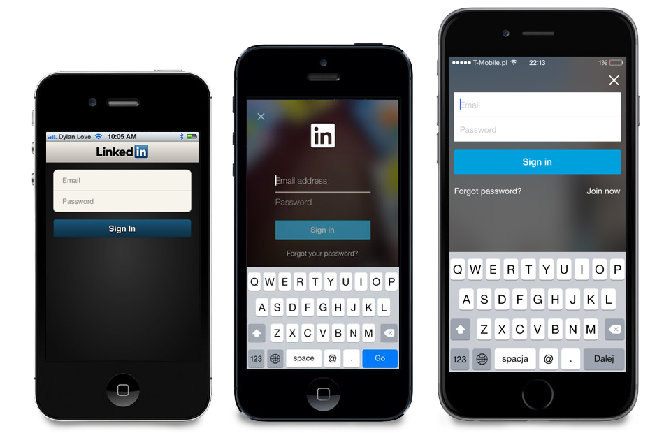 Tak wyglądała droga, którą w ciągu kilku lat przeszedł ekran logowania w LinkedIn: