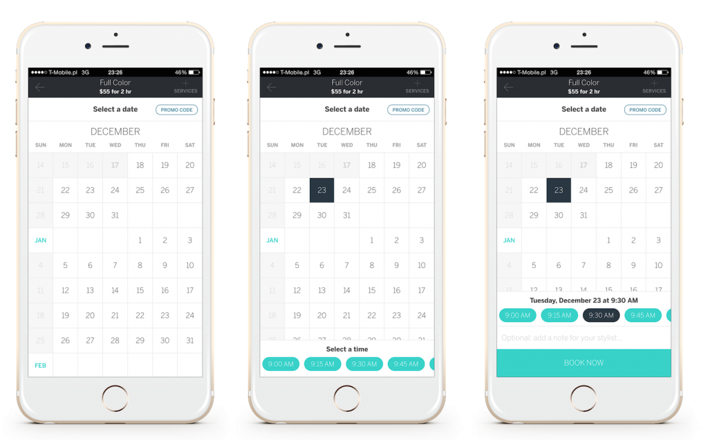Im mniej wysiłku musi włożyć użytkownik w dane zadanie, tym lepiej. Stąd pomysły takie jak Face Unlock w Galaxy Nexus, Touch ID w produktach Apple, itp. czy też upraszczanie wszystkich procesów do widoku jednego ekranu. Dla przykładu rzućcie okiem na proces zarezerwowania wizyty fryzjerskiej w aplikacji Styleseat: