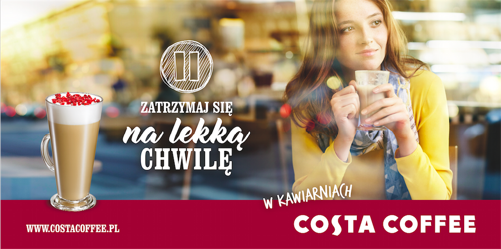„Bohaterami” wiosennej kampanii COSTA COFFEE są 3 nowe linie produktowe. Oferta light reprezentowana jest przez zawierającą jedynie 35 kcal w 100 ml kawę Viva Vanilla, serwowaną także na zimno. Towarzyszy jej szykowany na miejscu Jogurt naturalny z musli i musem owocowym, niskokaloryczny Muffin z jagodami czy puszysty Sernik light z owocami. Linia owocowa zostanie rozbudowana o aromatyczną kawę – Tukan CHAI Caffè Latte o egzotycznym smaku mango oraz Herbatę Premium z dodatkiem truskawek i porzeczek. Kategoria ciast rozszerzy się z kolei o Tort bezowy z żurawiną. Ponadto, od 20 marca pojawią się dwie innowacje z myślą o zdrowiu klientów ‒ wszystkie napoje kawowe w kawiarniach COSTA COFFEE będą mogły zostać przygotowane także na bazie mleka bez laktozy, a osoby cierpiące na nietolerancję glutenu znajdą w ofercie bezglutenowe Ciasto Czekoladowe, które będzie można także podgrzać w piecu.