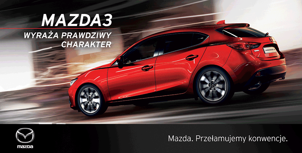Na backlightach części kreacji reklamowej zostały podświetlone w taki sposób, żeby tworzyły wrażenie pędzącego samochodu. Na plakacie ruszają się koła samochodu, a tło tworzy smugę światła. W ten sposób została podkreślona sportowa i dynamiczna stylistyka nadwozia Mazdy3.