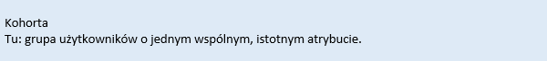 Weźmy grupę użytkowników pozyskanych ze wszystkich źródeł w pewnym przedziale czasu i oceńmy ich zachowanie i wartość w kolejnych okresach. To jest analiza kohortowa.