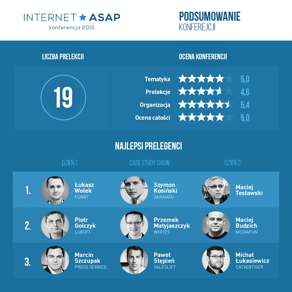 Uczestnicy wysoko ocenili zarówno tematykę, prelekcje, jak i organizację wydarzenia. Za największą wartość konferencji uznawano najczęściej różnorodność tematów i prelegentów. Na drugim miejscu –efektywny networking. – Spotykamy ludzi z trzech poziomów: praktyków z działów marketingu, agencji, oraz teoretyków, i możemy usłyszeć jakie są perspektywy na przyszłość – mówi Aleksandra Chalimoniuk z Sokołowa. A Andrzej Zemła z Grupy Inco dodaje – Jak do tej pory, Internet ASAP to najciekawsze wydarzenie w branży w tym roku. Niesamowita ilość wiedzy, do przełożenia na pracę z marką.