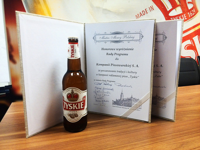 Mistrz Mowy Polskiej to program społeczny, którego celem jest popularyzacja języka polskiego i uhonorowanie nagrodami osób, które według powszechnie uznanych kanonów, zasługują na miano Mistrzów Mowy Polskiej. Po raz pierwszy, podczas jubileuszowej XV edycji konkursu, Rada doceniła także kampanie reklamowe marek Żubr i Tyskie wręczając honorowe wyróżnienie Kompanii Piwowarskiej. Jesteśmy bardzo dumni z honorowego wyróżnienia, które otrzymaliśmy. Podczas tworzenia naszych kampanii dużą wagę przywiązujemy nie tylko do kreacji, ale także do języka. Dziś kiedy bardzo popularne jest wtrącanie i używanie kolokwializmów czy zapożyczeń z języków obcych szczególnie ważne jest dbanie o kulturę języka polskiego i jego tradycję. Jako lider branży czujemy się odpowiedzialni aby tak właśnie postępować, jednocześnie nie rezygnujemy z dowcipu i humoru, bawiąc się słowami – mówi Aleksandra Zarychta-Kuzalska, Kierownik ds. PR marek Kompani Piwowarskiej.