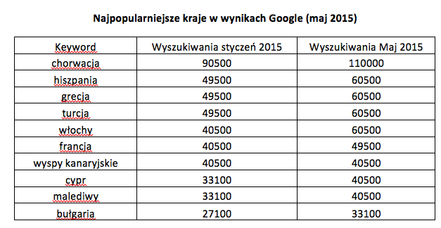 Interesujące jest także to, że Wyspy Kanaryjskie były tak samo popularne w styczniu, jak i w maju (ok. 40 000 zapytań w każdym miesiącu).